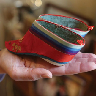 Back to beauty: How do we as a culture define beauty? In the book, beauty was defined by the size of a young girl’s feet. The Chinese tradition of foot binding, said to have started in the 10th century and banned in 1912 (but continued in rural villages for years after), was for young girls at the time a means to rise in society. The emperor’s emissaries would travel the countryside collecting taxes, and if they came upon a girl with tiny feet, she might rise to the status of a concubine at court. Small feet became a status symbol. Yet when a girl’s feet were bound, it was a painful procedure. Her toes were broken and curled under the arch of her foot. It meant that she walked in pain for the rest of her life. She would be bound to her home physically, in the truest sense of the word, because she could not walk far.